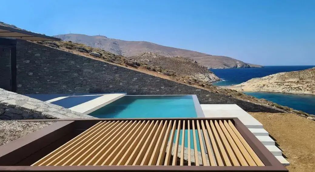 Ncaved is located on a small hidden rock Bay in Greece. In order to ensure a wide view and create a shelter where the north wind prevails, the design team chose to drill holes on the slope instead of arranging the building space on the ground.