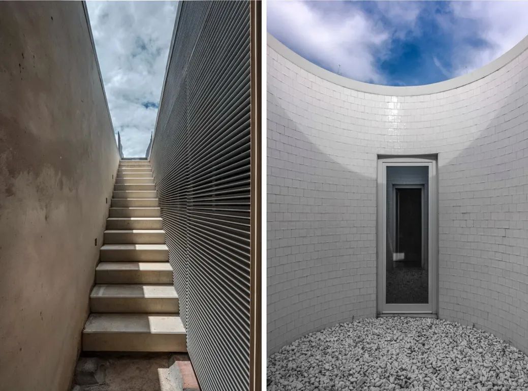 The dome structure cast from the terrain covers the whole social space, which is the life center of the house. An inverted dome intersects it and creates an opening to illuminate the space, shaping its precise geometry and boundaries. And the bedroom leads to the circular inner court.