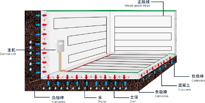 Compared with traditional waterproof methods, electro-osmotic technology shows significant advantages. Traditional methods often only deal with surface problems by plugging leaks or simply addressing air humidity, while 70% of basement dampness comes from the moisture inside the structure. Electro-osmotic technology precisely controls the water content of the structure and intelligently regulates the movement direction of water molecules, effectively preventing the invasion of moisture, thus maintaining the dryness and comfort of the basement environment.